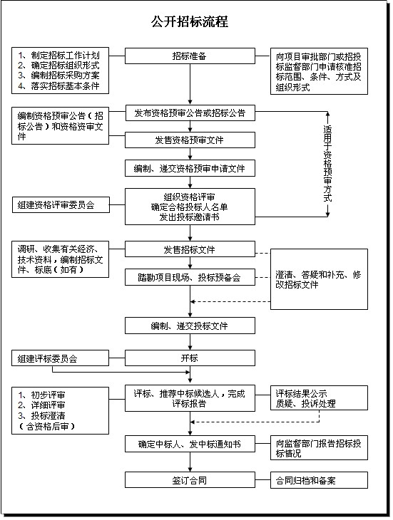 公開招標應同時在一家以上的全國性報刊上刊登招標通告,邀請潛在的有關單位參加投標;